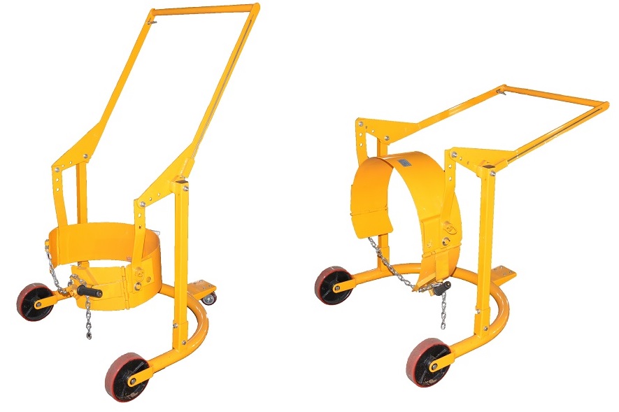 Nuestro Transportador Vertical De Tambores, es un equipo ideal para mover y vaciar tambores métalicos de 205Lts. Equipo de construcción súper reforzada en chapa plegada de 1/16″ de espesor, pensado para mover tambores metalicos en posicion vertical De facil desplazamiento con dos ruedas montadas sobre rodamientos con un diametro de 200mm en Hierro y Poliuretano con rodamientos y una rueda giratoria de 125mm