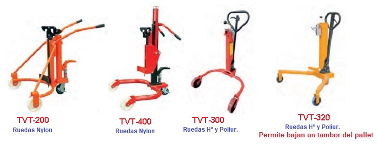Nuestro Transportador Vertical De Tambores, es un elevador manual hidraúlico de tambores, equipo de construcción súper reforzada en chapa plegada de 3/16″ de espesor, pensado para mover tambores metalicos en posicion vertical Su robusto cilindro permite elevar el mismo desde 0 a 240 mm, 430 mm De facil desplazamiento con dos ruedas montadas sobre rodamientos con un diametro de 200mm en Nylon de alto transito y una gase giratoria en su base Este equipo cuenta con un eficaz gancho sujetador que toma al tambor en posicion vertical de su virola