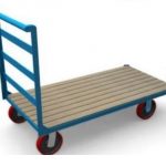 Esta zorra manual para cargas pesadas, preparada para una capacidad de carga de 800 Kg, se fabrica con piso de chapa rayada N°16. Su bastidor contruido en caño estructural de 50x30x1,6 Posee una baranda de empuje de construcción angular, cerrada con planchuelas de 2″x 3/16″ De cuatro ruedas en fundición y goma, fundición y poliuretano o nylon, de diámetro 160 / 200 mm con rodamientos, dos giratorias y dos fijas Acabado en esmalte epoxi de color azul (RAL-5012)